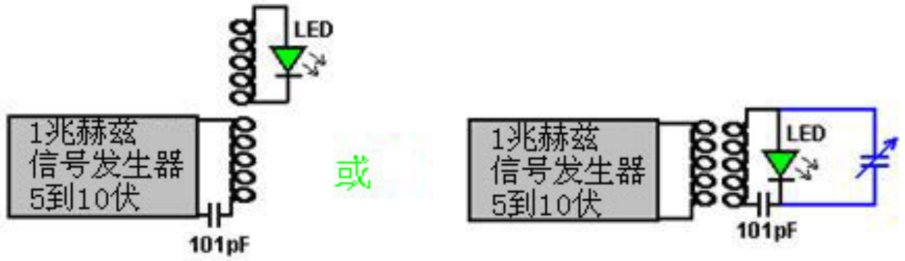 (b)使用自然频率,即,线圈线长与频率匹配-线圈既有电容也有电感。
